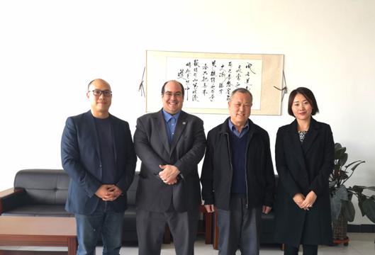 3月26日,美国罗克福德大学国际事务办公室处长Sam Bandy先生一行来到我校进行访问交流,并洽谈合作办学事宜。我校校长杨化仁在办公室热情接待了远道而来的客人们;国际合作与交流中心主任张倩陪同接待。