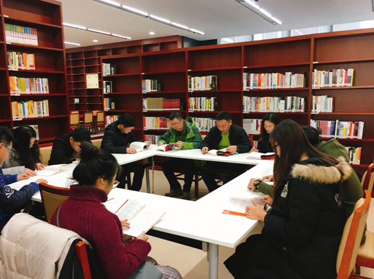 随后师生们来到了图书馆三楼的“政治思想史”书目的图书借阅区,开展了党员自我学习和集体讨论。师生们认真阅读学习了党章修改的内容和十九大精神的核心内容。