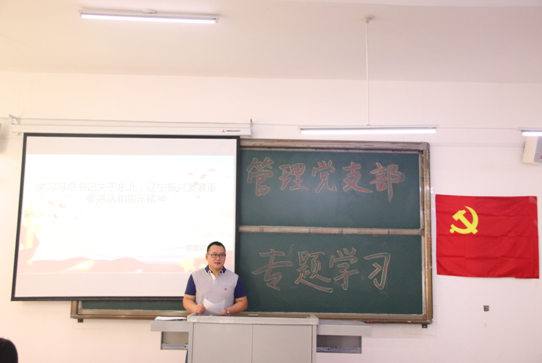9月25日,管理党支部在第二教学楼303教室组织全体党员重温了习近平总书记关于东北、辽宁振兴发展重要讲话和指示精神。会上,各位党员同志热情高涨、踊跃发言,并结合自身的思想、工作实际,从不同侧面交流学习心得、分享学习成果、畅谈落实思路。并纷纷表示,要认真学习贯彻落实中央决策部署,切实提高政治站位,自觉把思想和行动统一到习近平总书记重要指示精神上来,抓好重点工作落实,推进学习教育稳步前行。