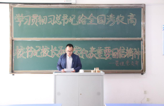 9月26日,机械党支部在支部党员活动室召开了《习近平总书记给全国涉农高校书记校长和专家代表重要回信精神 》专题学习会。会上,支部书记徐鹏表示,习近平总书记给全国涉农高校书记校长和专家代表回信,是对涉农高校加强人才培养、服务“三农”事业的充分肯定,“三农”问题关系着国家安全稳定与长治久安,要充分认识习近平总书记重要回信的深刻内涵和重大意义;支部组织委员王楠提出,“三农”事业的发展离不开培养精英和科技创新,中国现代化离不开“三农”现代化,“三农”现代化关键在人才和技术;支部宣传委员王敬伊指出,要自觉把思想和行动统一到习近平总书记重要回信精神上来,积极应对新一轮科技改革和产业变革的时代浪潮,顺应一二三产业融合发展趋势。同时,与会同志纷纷表示,要迅速把回信精神转化为推动教育改革发展的实际行动,努力开创教育发展新局面,以优异成绩庆祝新中国成立70周年。