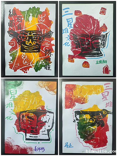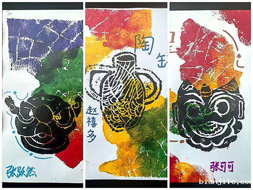 吹塑纸版画课程则带孩子们走进传统工艺世界,感受非遗文化韵味。教师通过实物展示、历史讲解,介绍青铜器起源、发展及纹饰特点,从饕餮纹的神秘庄重到云雷纹的灵动流畅,让孩子们潜移默化中领略中华传统文化的博大精深。随后,详细演示画稿、刻版、涂色、拓印等制作流程,孩子们手持铅笔在吹塑纸上勾勒纹饰,拓印环节充满惊喜——当颜料涂抹版面、盖上宣纸按压,古朴典雅的青铜器版画显现时,教室响起阵阵欢呼。“原来古代青铜器这么漂亮,这种画画方式太有趣了!”一位同学兴奋地说。亲身体验全程后,孩子们不仅掌握版画制作技巧,更增强了文化自信。