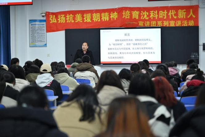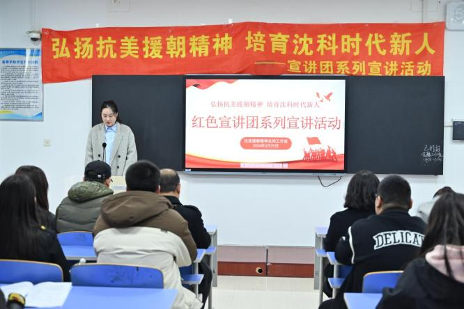 近日,在全校师生大力弘扬伟大抗美援朝精神、深入贯彻“五学五做”育人理念之际,我校抗美援朝精神教育宣讲团开展以“弘扬抗美援朝精神、培育沈科时代新人”为主题的系列宣讲活动,本次活动由辽宁省本科教学名师、抗美援朝精神名师工作室负责人、马克思主义学院思政教研室主任赵家和教授主讲。马克思主义学院院长刘芳、形势与政策教研室主任李淑娟、思政类学生社团指导教师、百余名学生骨干出席活动。活动由孟卓主持。