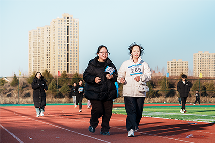 伴随着发令枪响,2公里校园跑正式开始。运动员们以饱满的激情、昂扬的姿态奋力向前奔跑。他们不惧寒冷,热情高涨,以矫健的身姿,坚韧的毅力,挑战自我,超越极限。